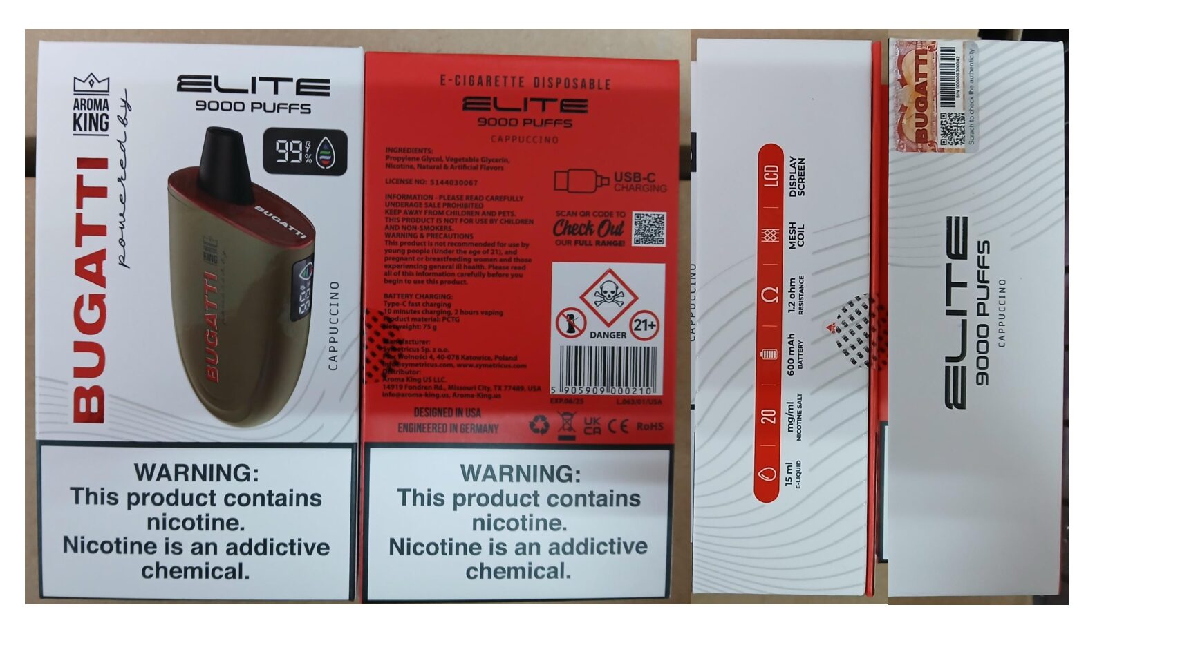 Jednorázové elektronické cigarety zn. AROMA KING BUGATTI powered by ELITE 9000 PUFFS, objem 15 ml – 7 příchutí