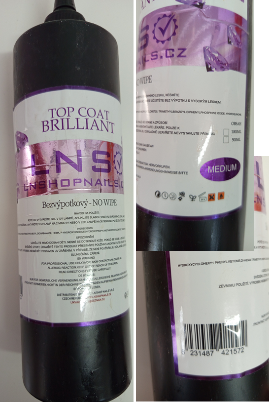TOP COAT BRILLIANT – NO WIPE, MEDIUM, LNS, LNSHOPNAILS.CZ; číslo šarže/ sp. do: neuvedeno; EAN: 8231487421572